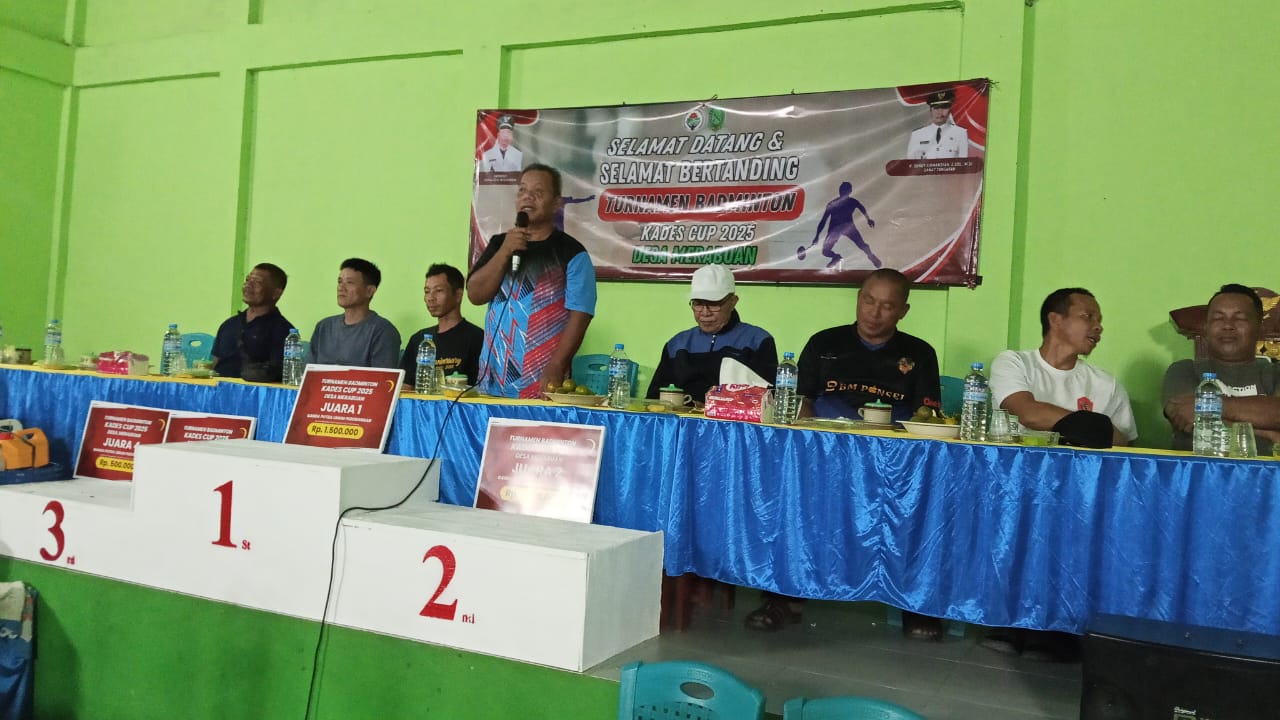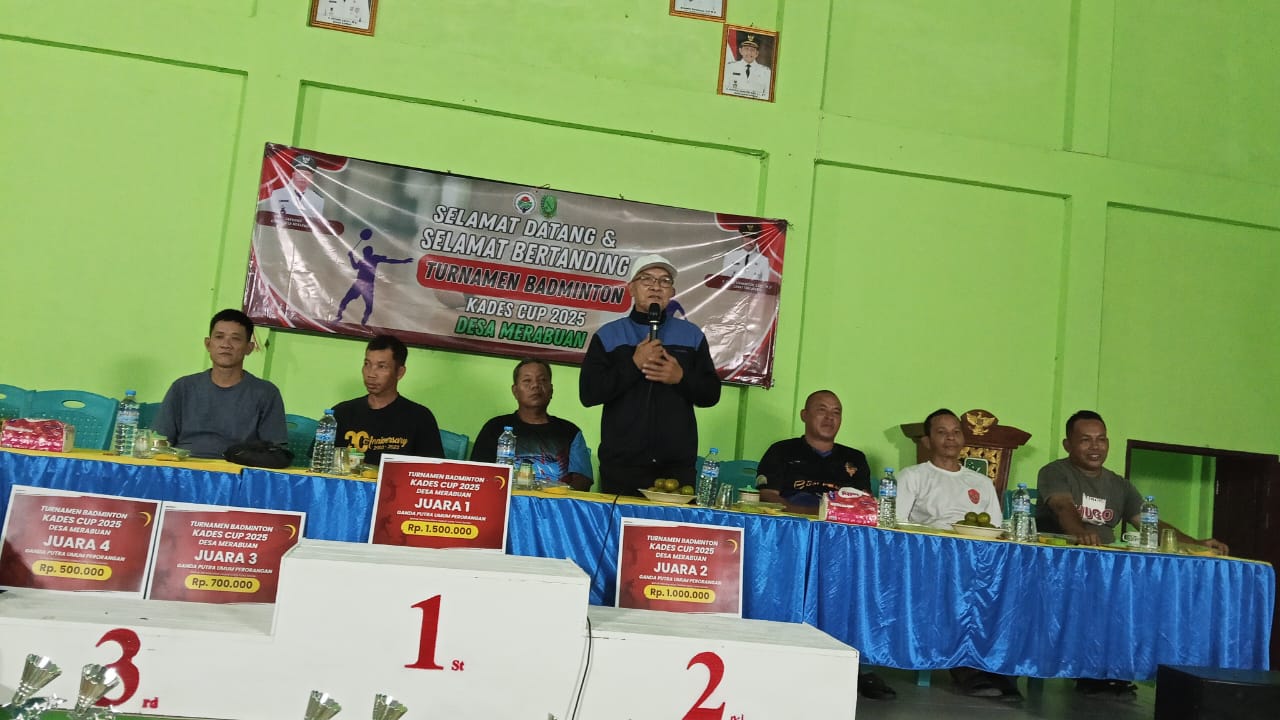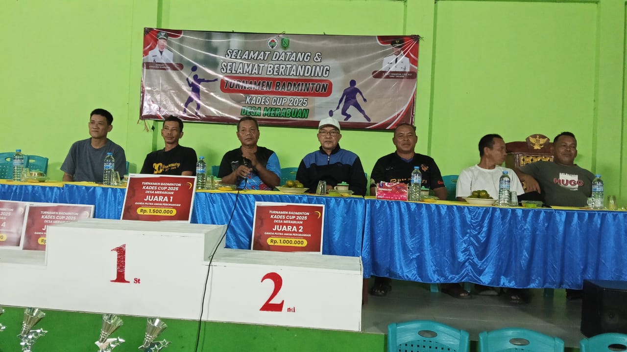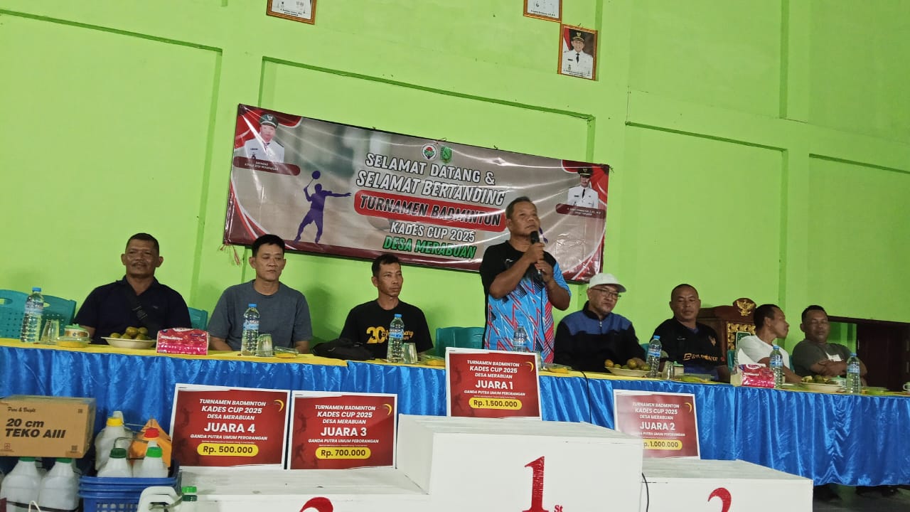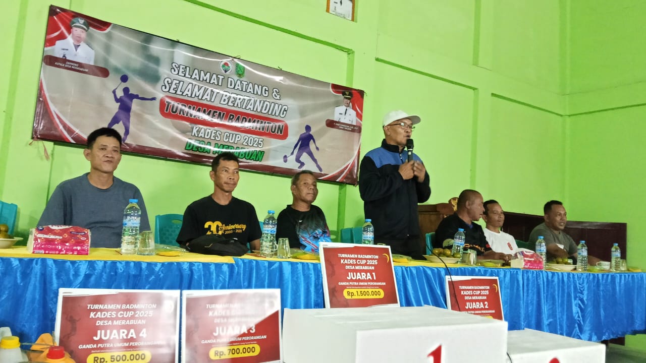 Camat Tangaran, H Suhut Firmansyah SSos MSi, mengapresiasi gelaran pertandingan turnamen badminton piala kepala desa merabuan tahun 2025. Puncak turnamen pada Sabtu Malam (11/10), digelar pertandingan final dan menghasilkan Juara diraih pasangan Sude – Syahrul, juara 2 pasangan Ridwan-Mindi, Juara 3 Pasangan Siis-Yadi dan Juara Harapan pasangan Inda-Pak Uteh.