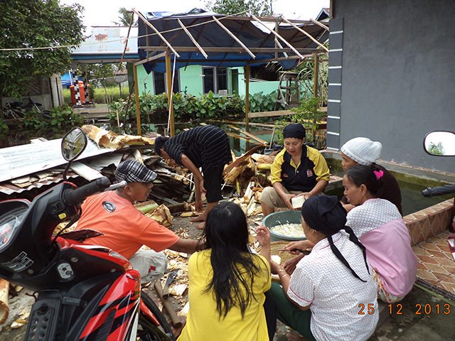 Para seksi konsumsi sedang sibuk menyiapkan dapur umum untuk kegiatan MTQ ke 26 Kabupaten Sambas di Kecamatn Tangaran Tahun 2013.