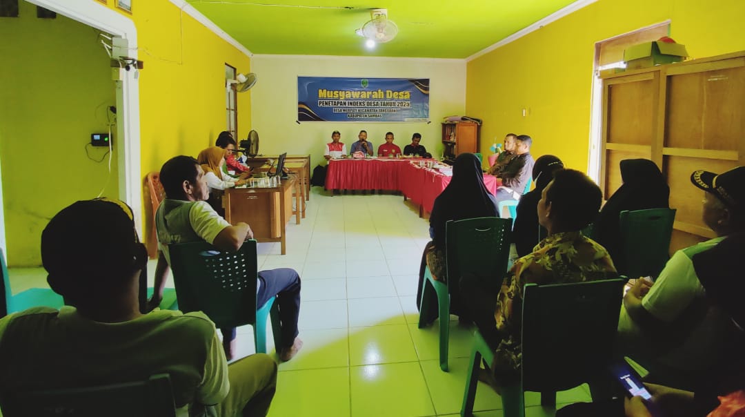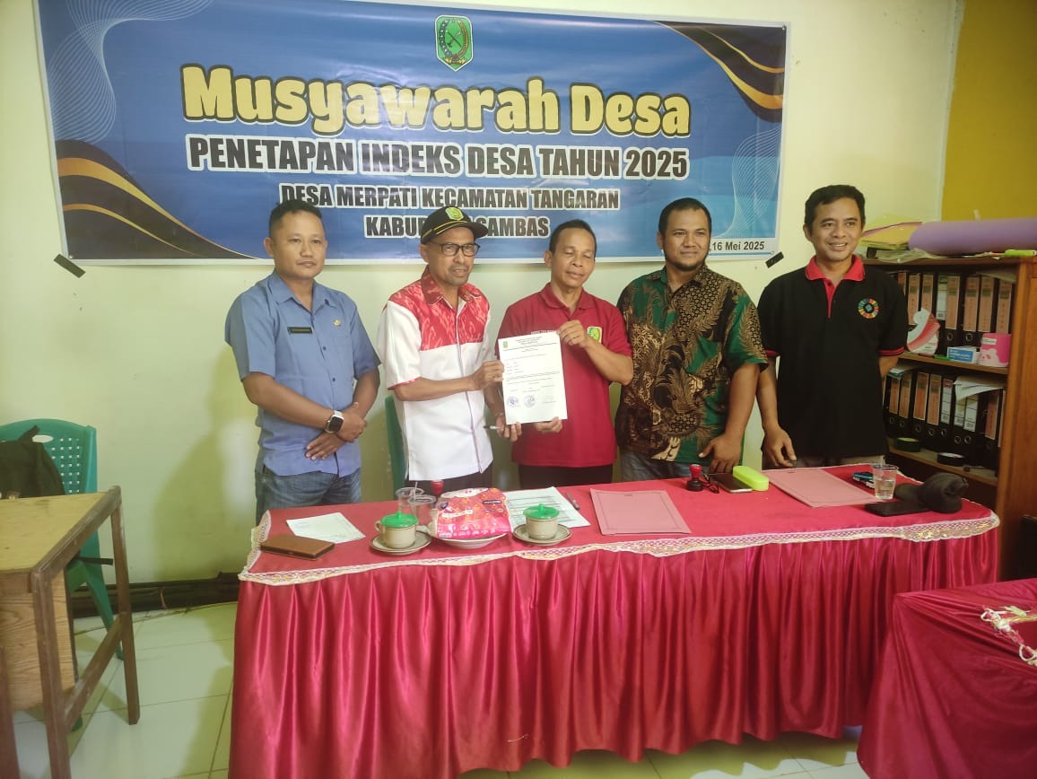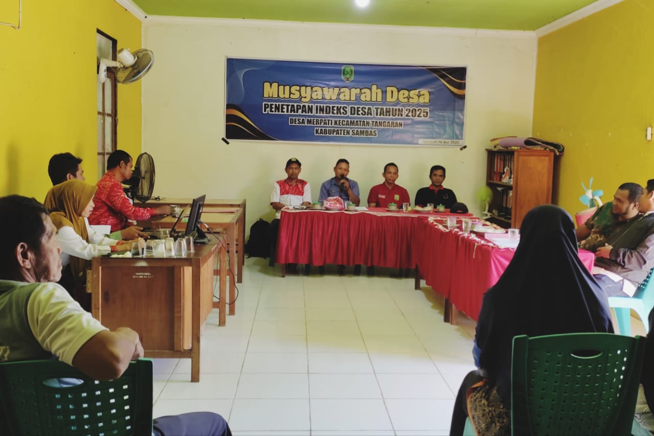 Desa Merpati Kecamatan Tangaran menggelar Musyawarah Desa terkait Indeks Desa 2025, Jumat (16/5). Musdes dihadiri Kepala Seksi Pemberdayaan Masyarakat Desa, Robi Asmadihansyah AMd, mewakili Camat Tangaran H Suhut Firmansyah SSos MSi.