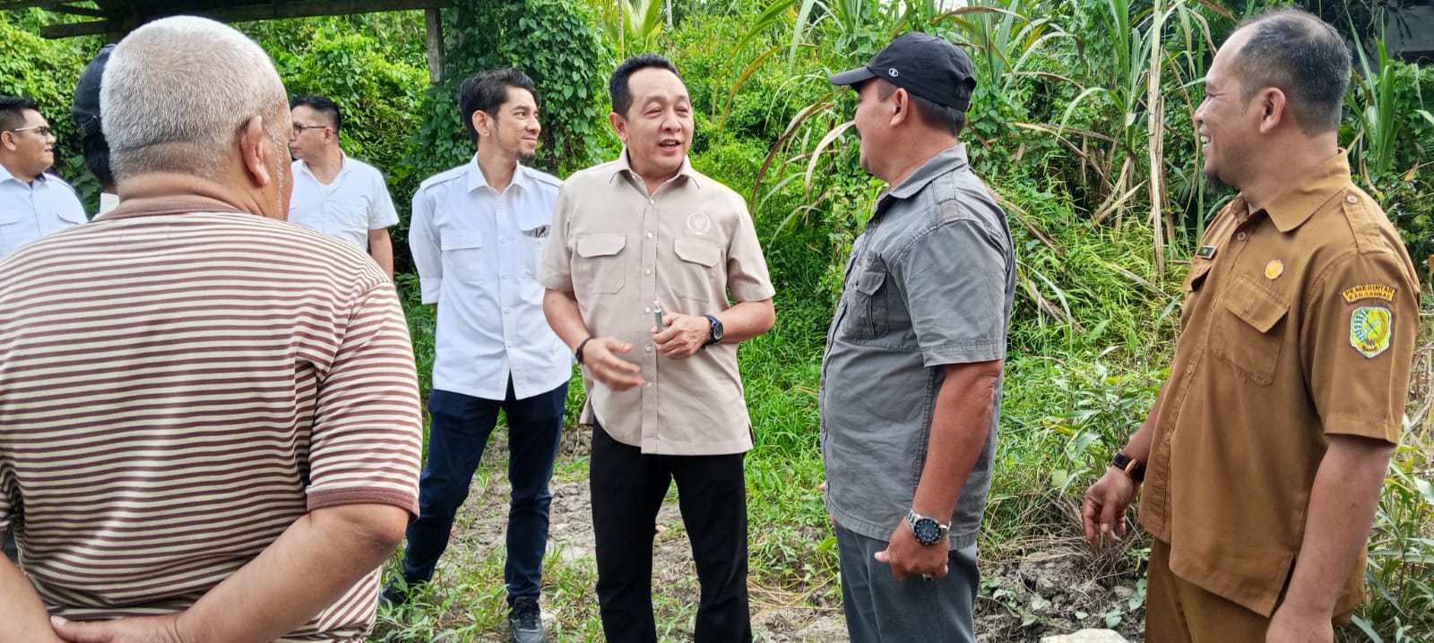 Anggota Komisi V DPR RI H Yuliansah SE melakukan peninjauan lokasi Usulan Pembangunan Jalan Simpang Empat – Pinang Merah melalui Inpres Jalan Daerah, Selasa (10/2). Yuliansyah yang juga Ketua DPRD Partai Gerindra Provinsi Kalbar melakukan peninjauan langsung salah satu titik jalan di Dusun Parit Merdeka desa Simpang Empat Kecamatan Tangaran.