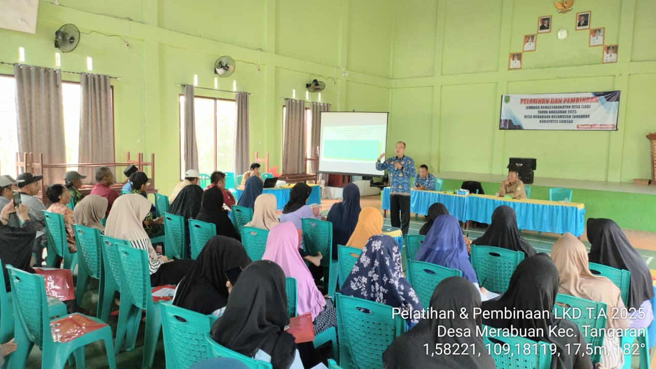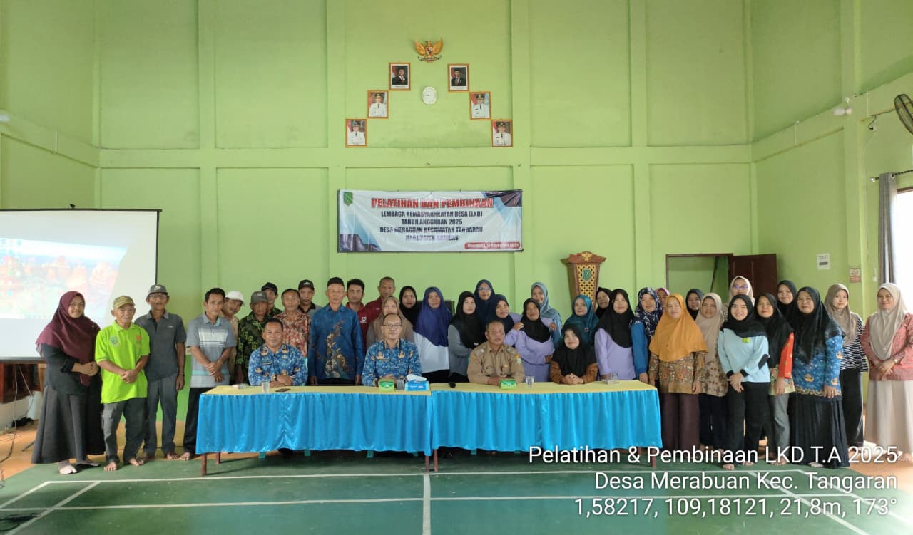 Kegiatan Pelatihan dan Pembinaan LKD dipusatkan di Gedung Serbaguna Desa Merabuan. Dihadiri Camat Tangaran, Kepala Seksi Tata Pemerintahan Kantor Camat Tangaran dan beberapa undangan lainnya.