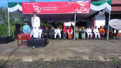 Sekretaris Camat, Endi Kurniawan, menyampaikan sambutan pada Musyawarah Desa Merabuan terkait Indeks Desa tahun 2025
