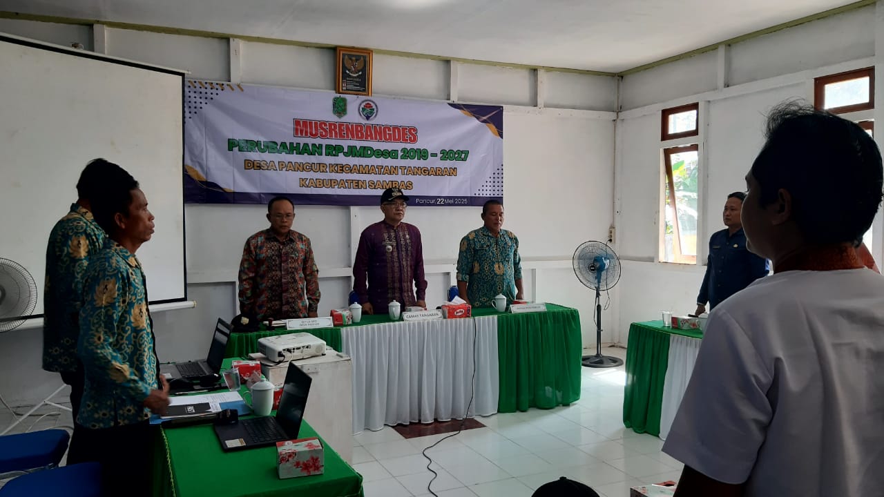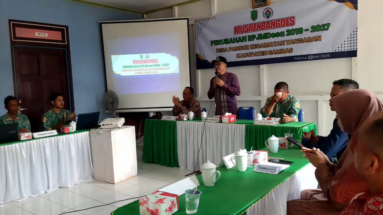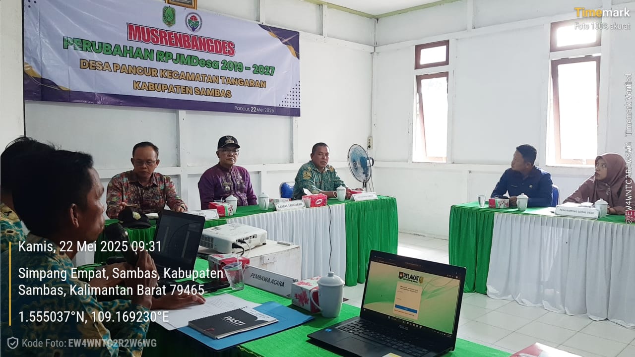 Desa Pancur Kecamatan Tangaran, menggelar Musyawarah Perencanaan Pembangunan Desa membahas Rencana Pembangunan Jangka Menengah Desa Perubahan tahun 2019 – 2027, Kamis (22/5).
