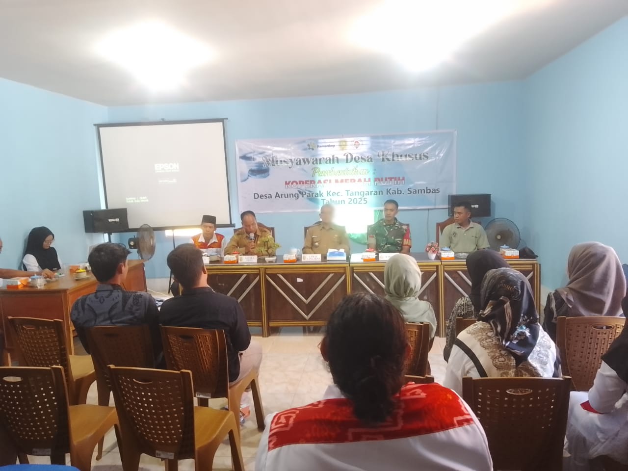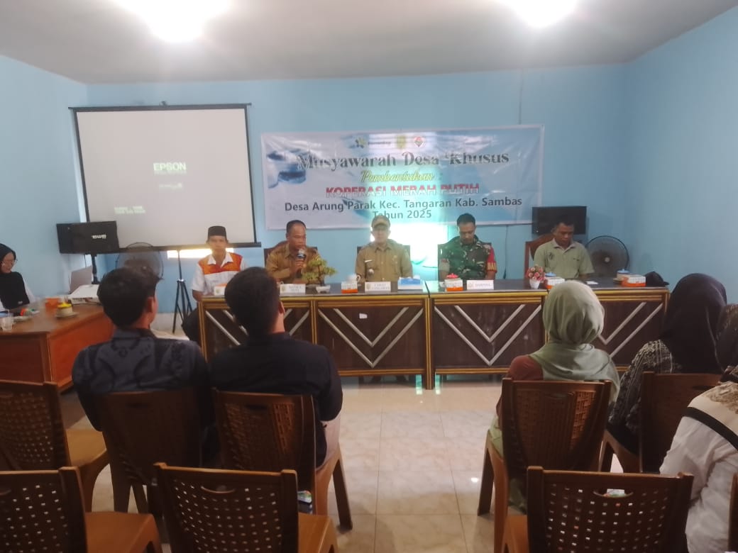 Camat Tangaran, H Suhut Firmansyah SSos MSi menghadiri Musyawarah Desa Khusus Arung Parak. Musdes Khusus tersebut dalam rangka pembentukan Koperasi Desa Merah Putih Arung Parak.