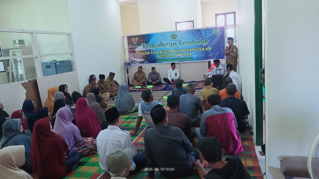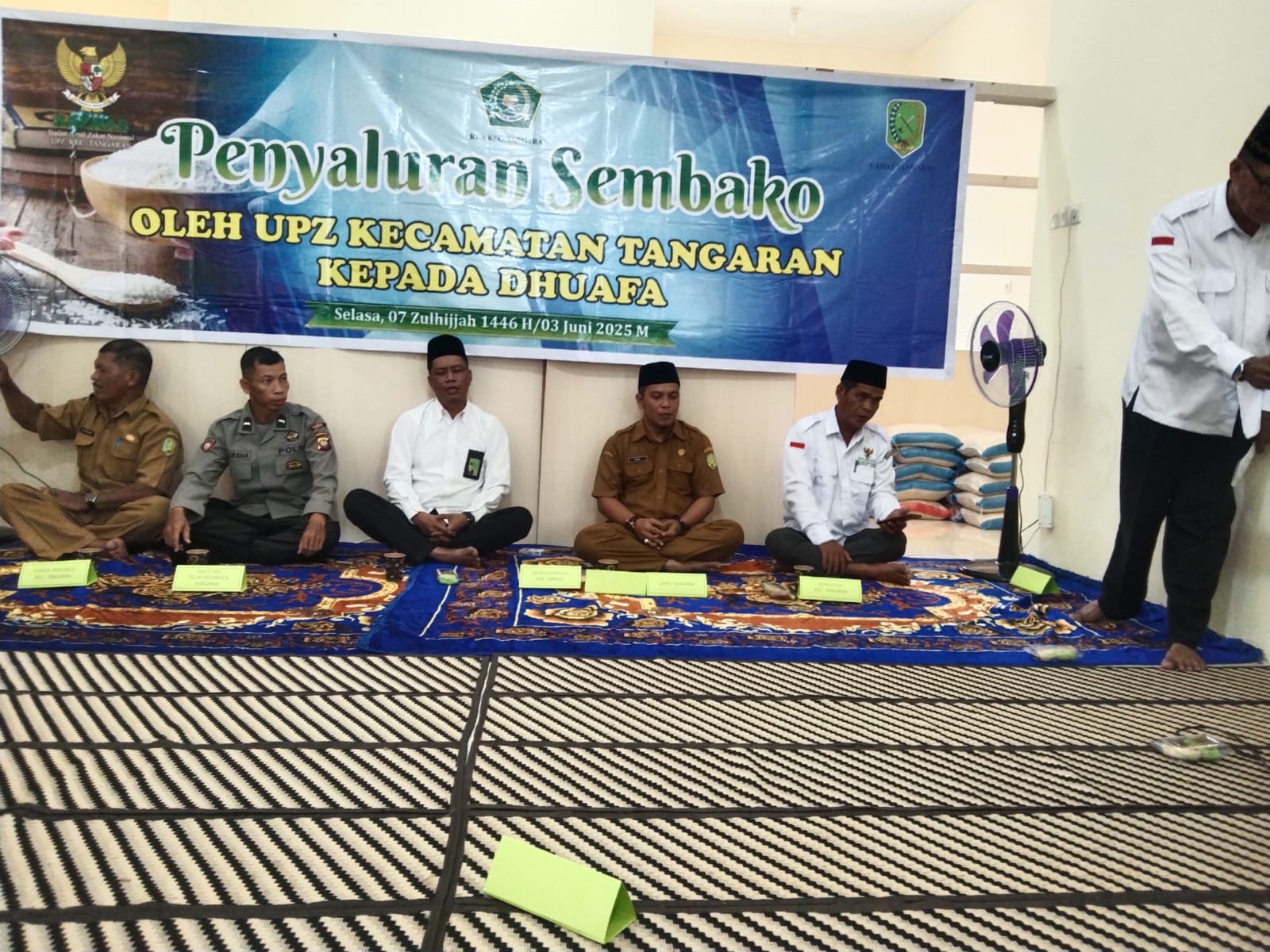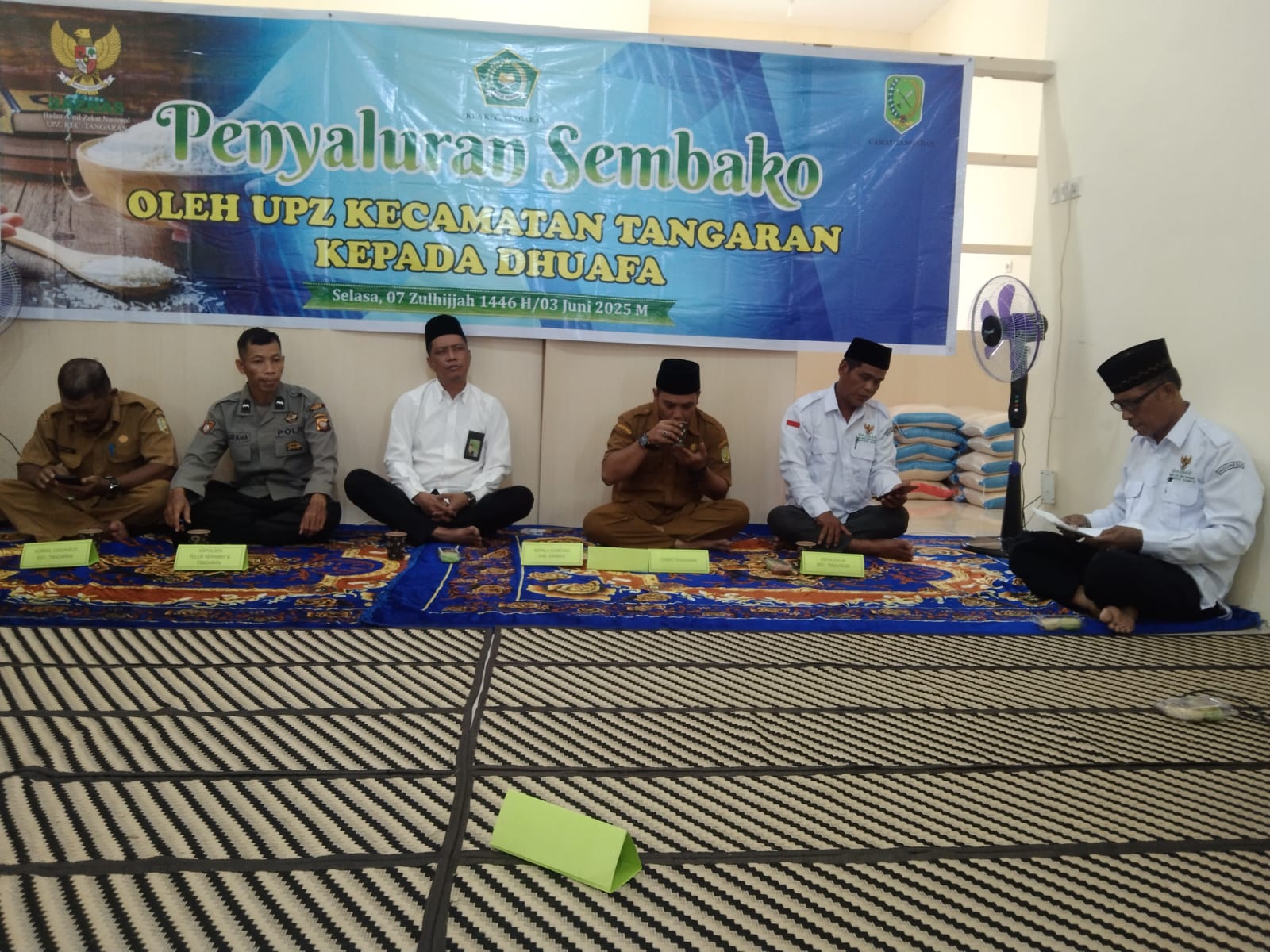 Badan Amil Zakat Nasional Kabupaten Sambas Pengurus menggelar penyerahan paket kebutuhan pokok untuk 50 dhuafa se-Kecamatan Tangaran, Selasa (3/6). Penyerahan tersebut bekerjasama dengan Unit Pengumpul Zakat Kecamatan Tangaran. Penyerahan secara simbolis diserahkan Sekretaris Camat Endi Kurniawan SE bersama Rombongan Baznas Kabupaten Sambas, Pengurus UPZ Kec Tangaran disaksikan Perwakilan Kantor Kementerian Agama Kab Sambas, Kantor Urusan Agama Kec Tangaran dan Para Kepala Desa se-Kec Tangaran.