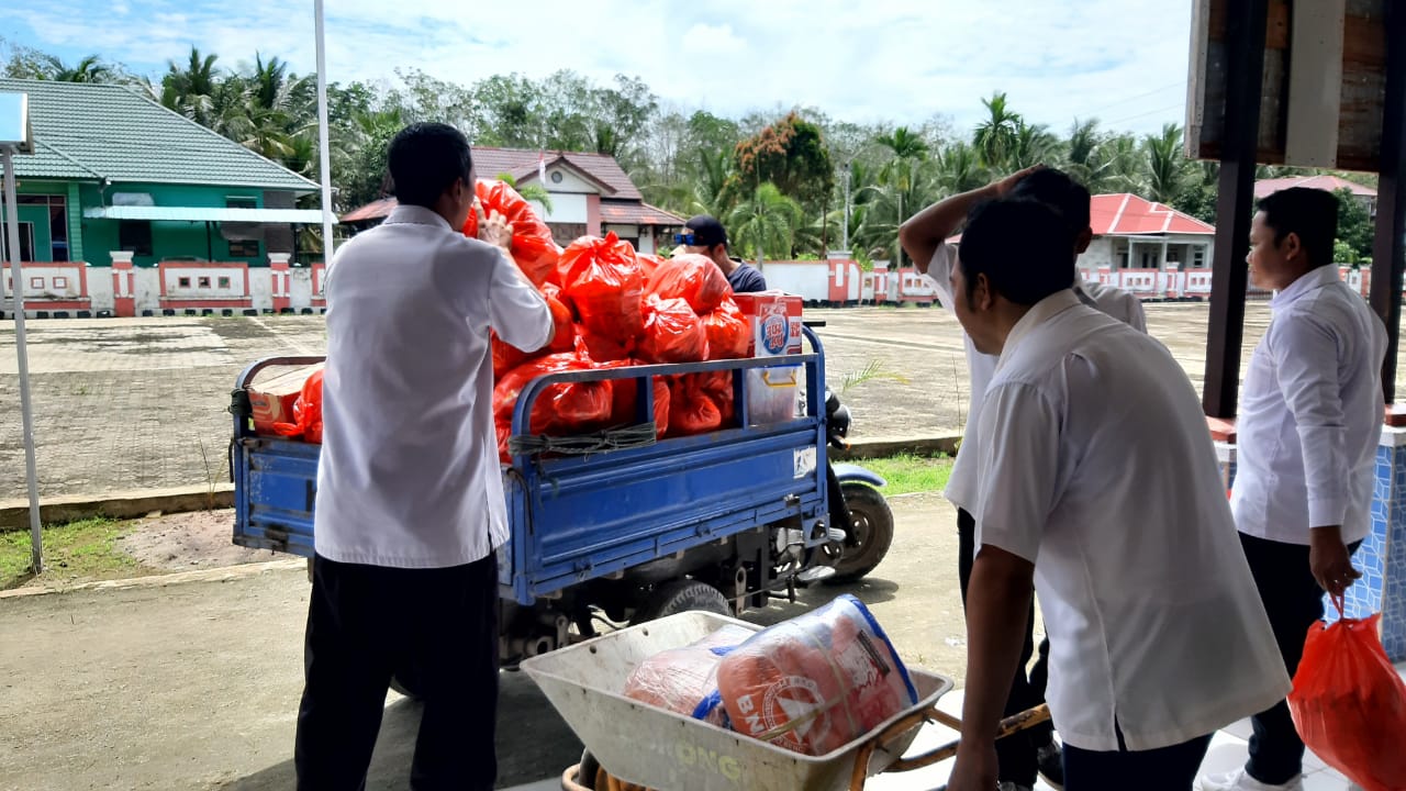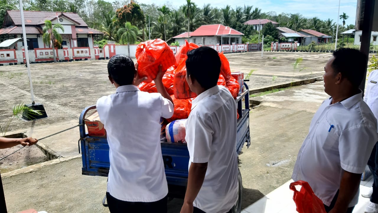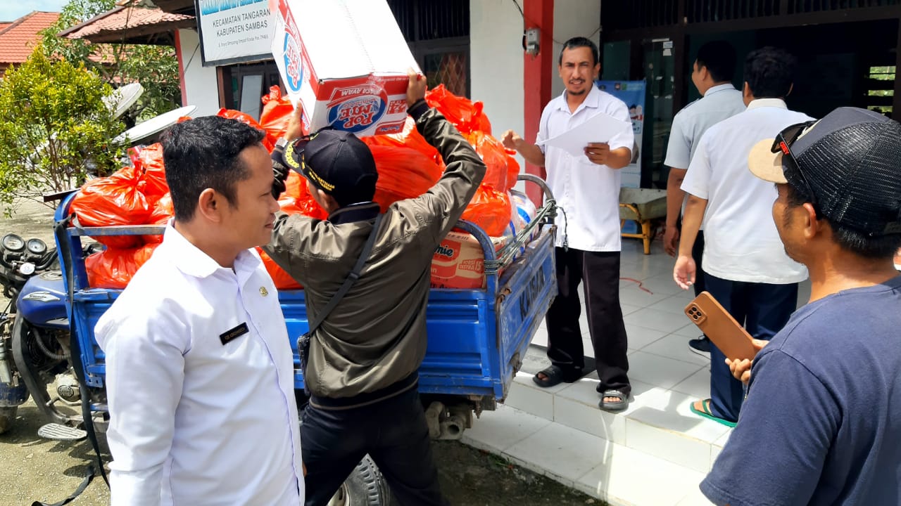 Penyerahan Logistik Bantuan dari Pemerintah Kabupaten Sambas bagi Desa yang terdampak banjir di Kecamatan Tangaran beberapa waktu lalu. Logistik bantuan didistribusikan langsung pihak Pemerintah Kecamatan Tangaran kepada Pemerintah Desa di Kecamatan Tangaran