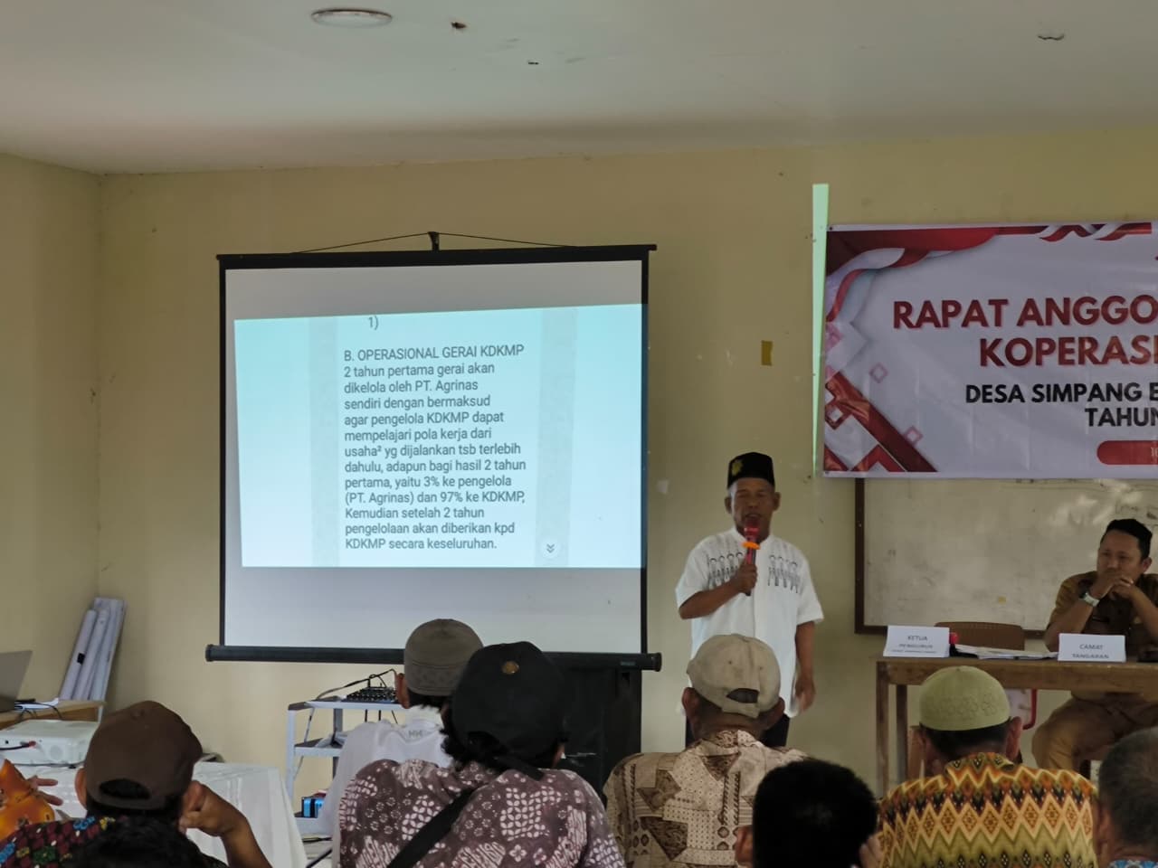 RAT yang dihadiri Komponen Kantor Camat, Desa, Babinsa, Bhabinkamtibmas, Pendamping Desa, Bisnis Asisten dan Pengurus KDMP beserta Anggota. RAT yang digelar tidak membahas Rugi dan Laba.