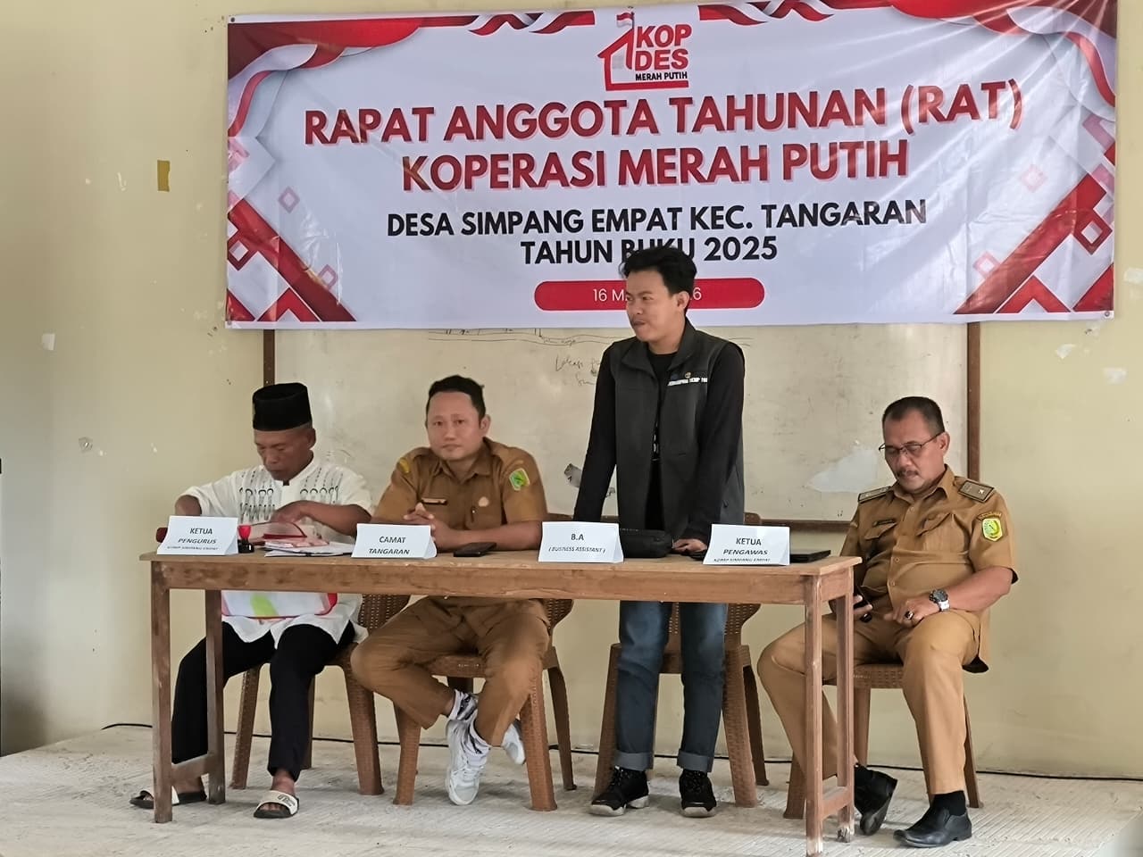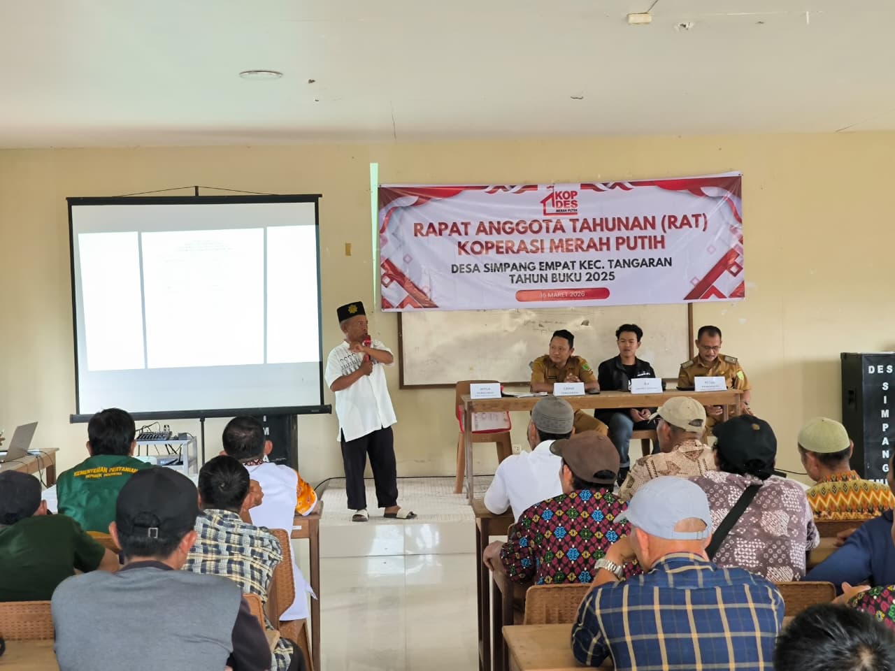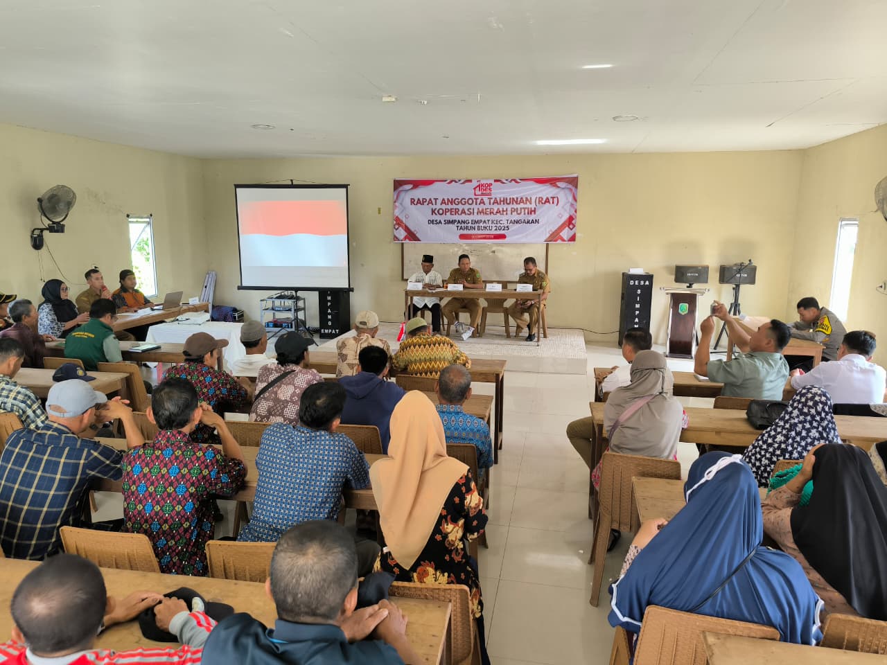 Koperasi Desa Merah Putih Desa Simpang Empat menggelar Rapat Akhir Tahun untuk Periode tahun 2025. RAT digelar di Ruang Serbaguna Kantor Desa Simpang Empat, Senin (16/3).