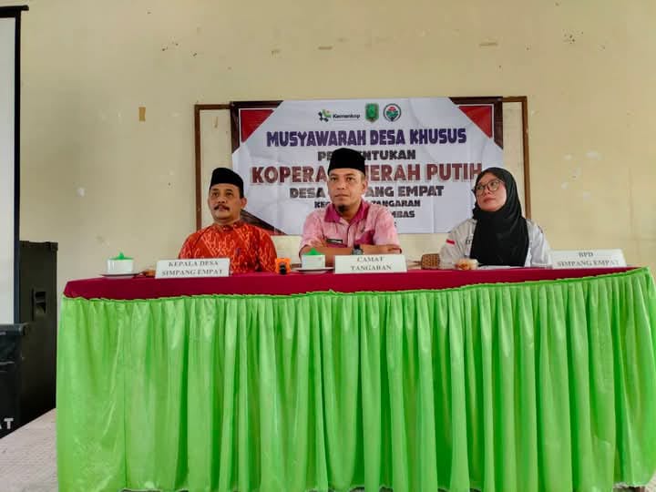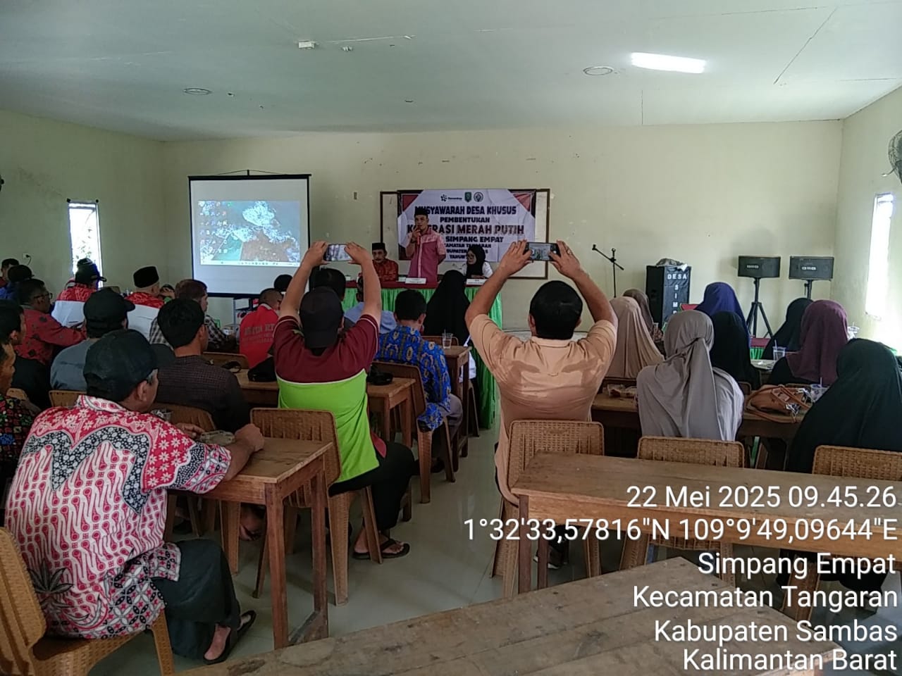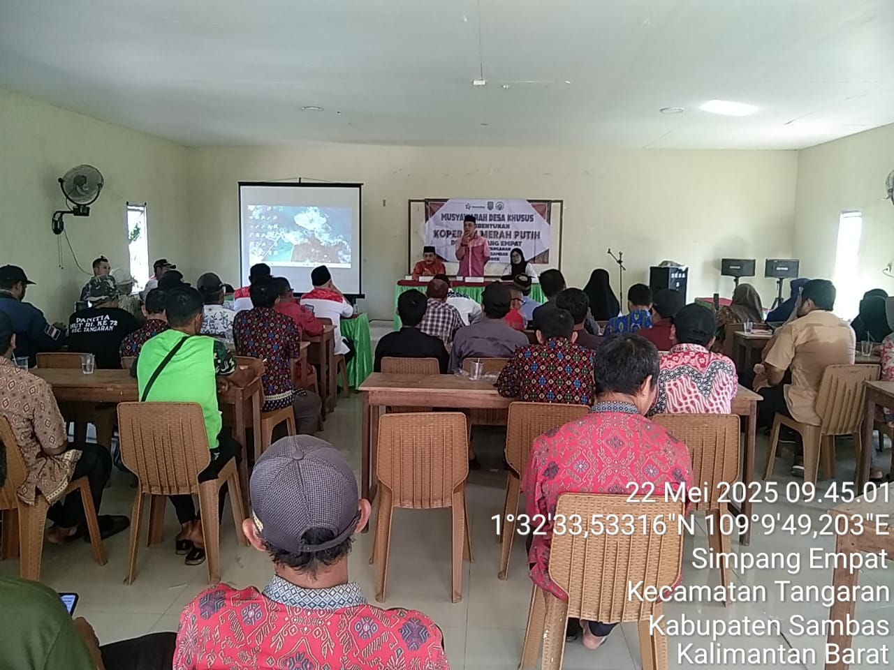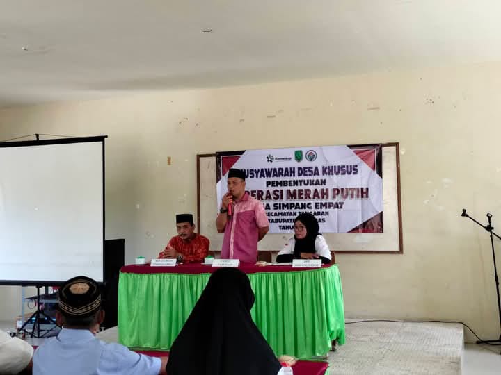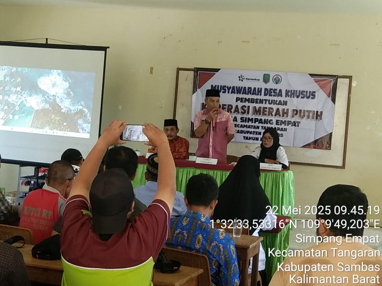 Desa Simpang Empat, Kecamatan Tangaran, telah melaksanakan Musyawarah Desa Khusus, Kamis (22/5). Agenda Musdes Khusus tersebut dalam rangka pembentukan Koperasi Desa Merah Putih.