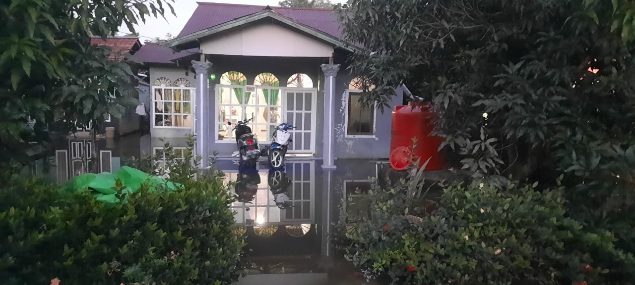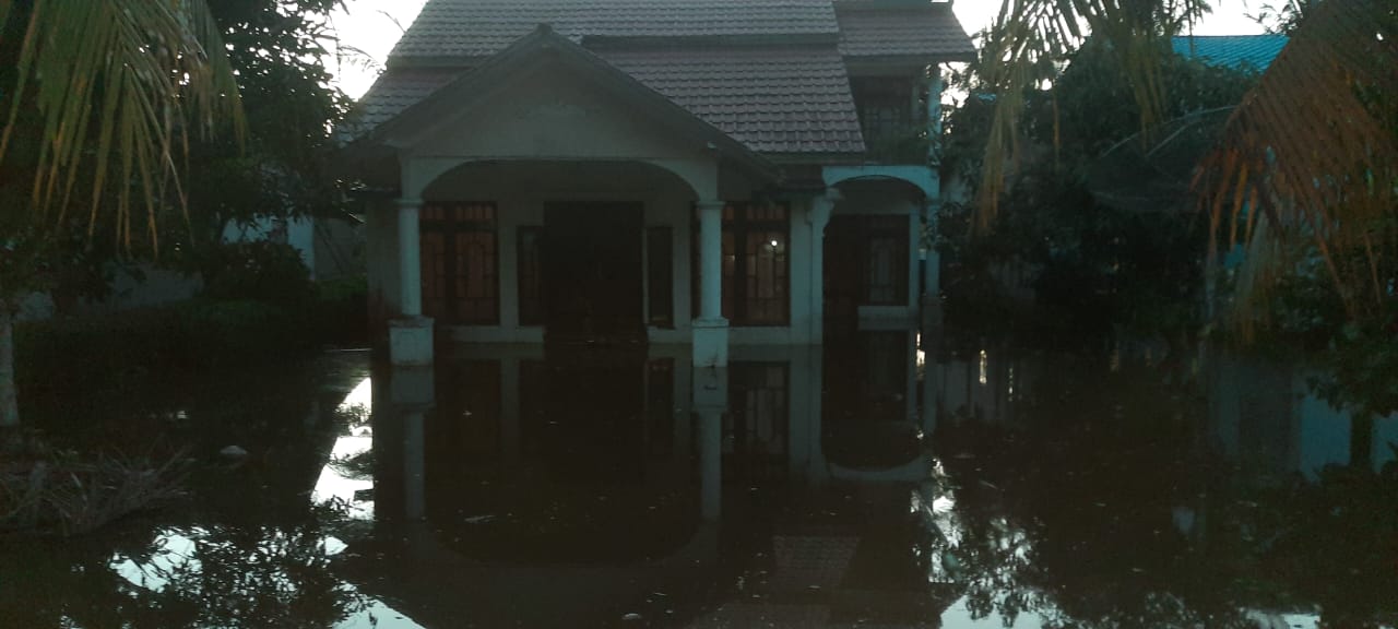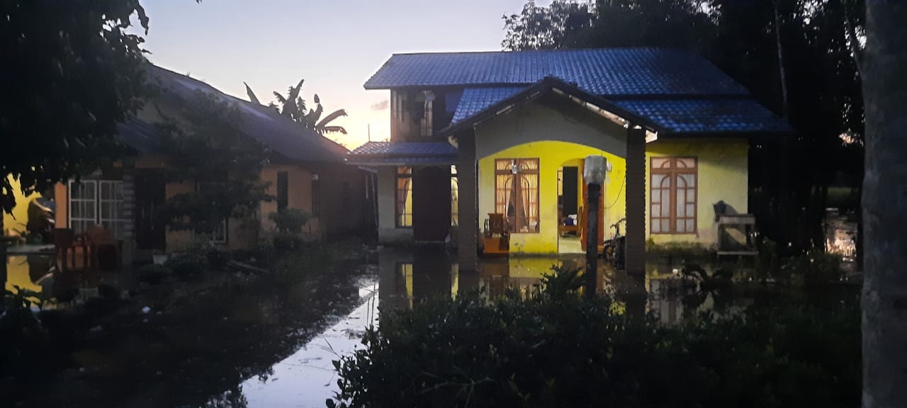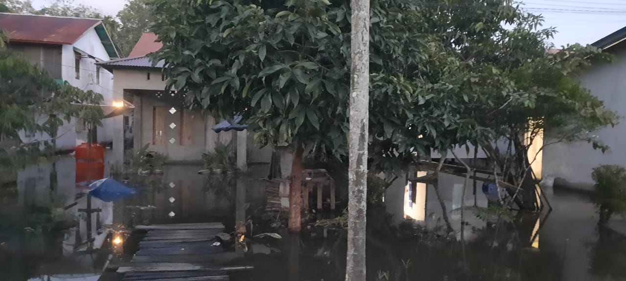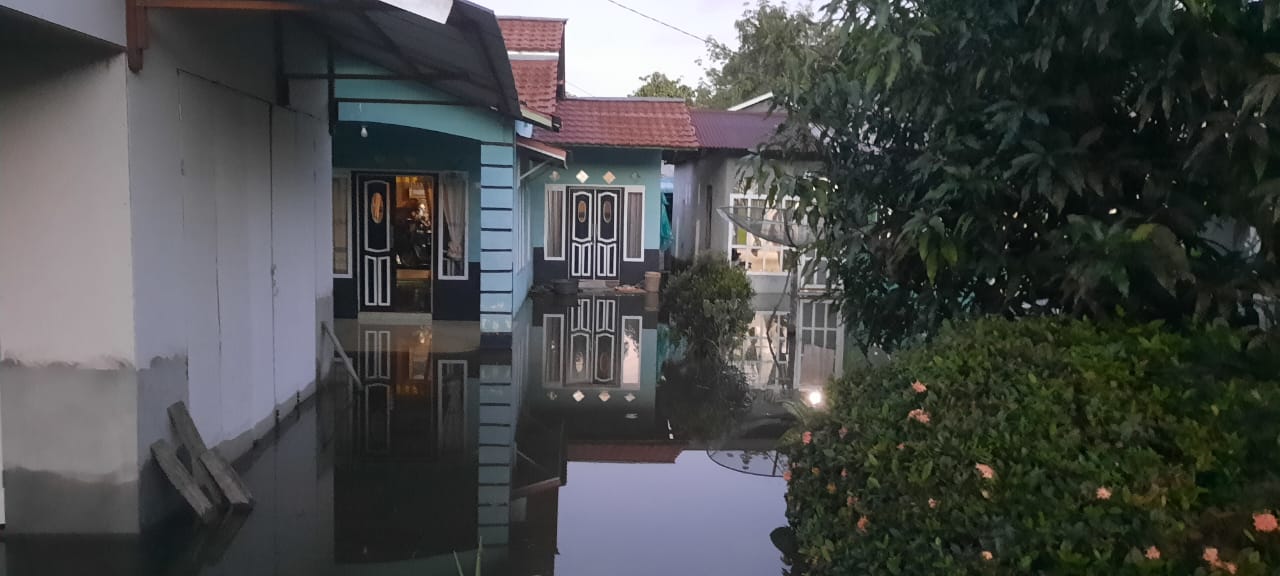 Banjir merendam bangunan fasilitas umum seperti sekolah hingga permukiman warga. Selain itensitas hujan, pengaruh naiknya permukaan air sungai akibat pasang surut menjadi penyebab banjir yang terjadi rata-rata mulai pukul 5 pagi dan baru surut sekitar pukul 10 pagi.