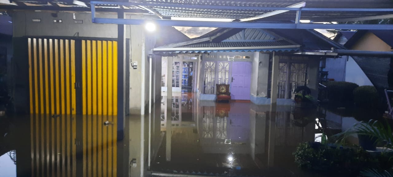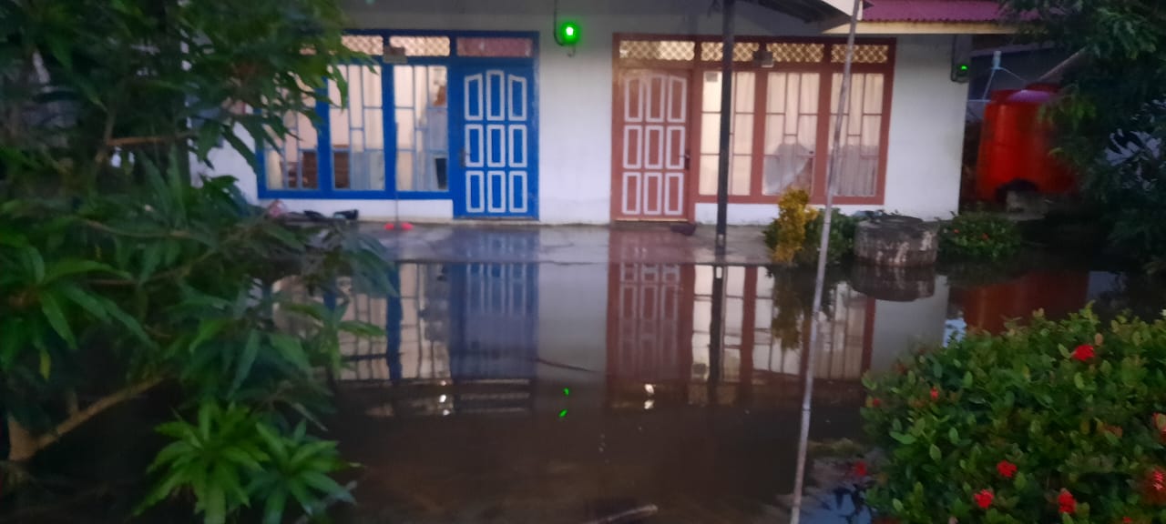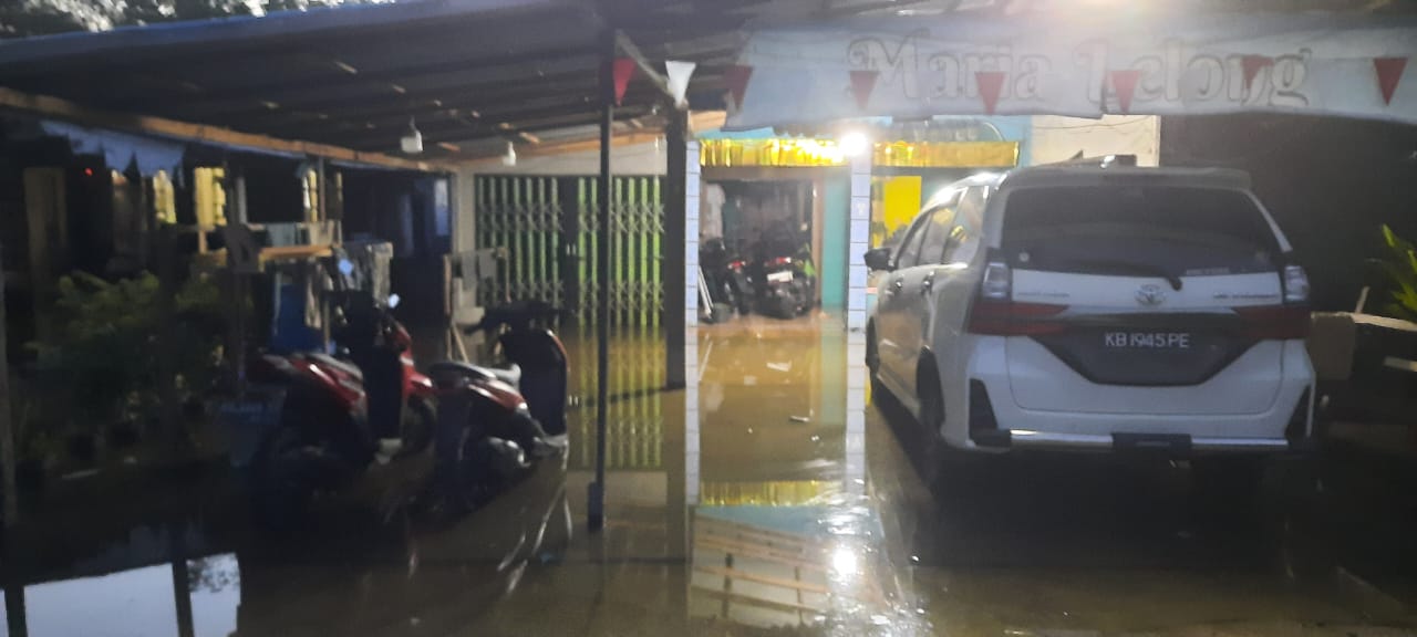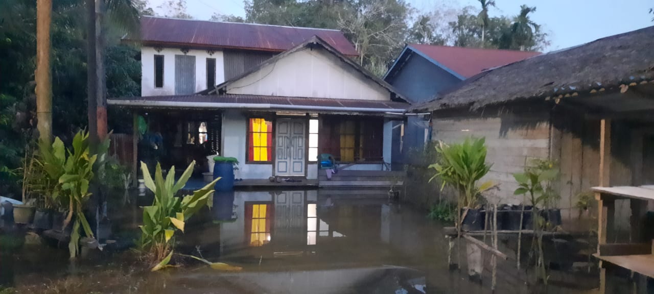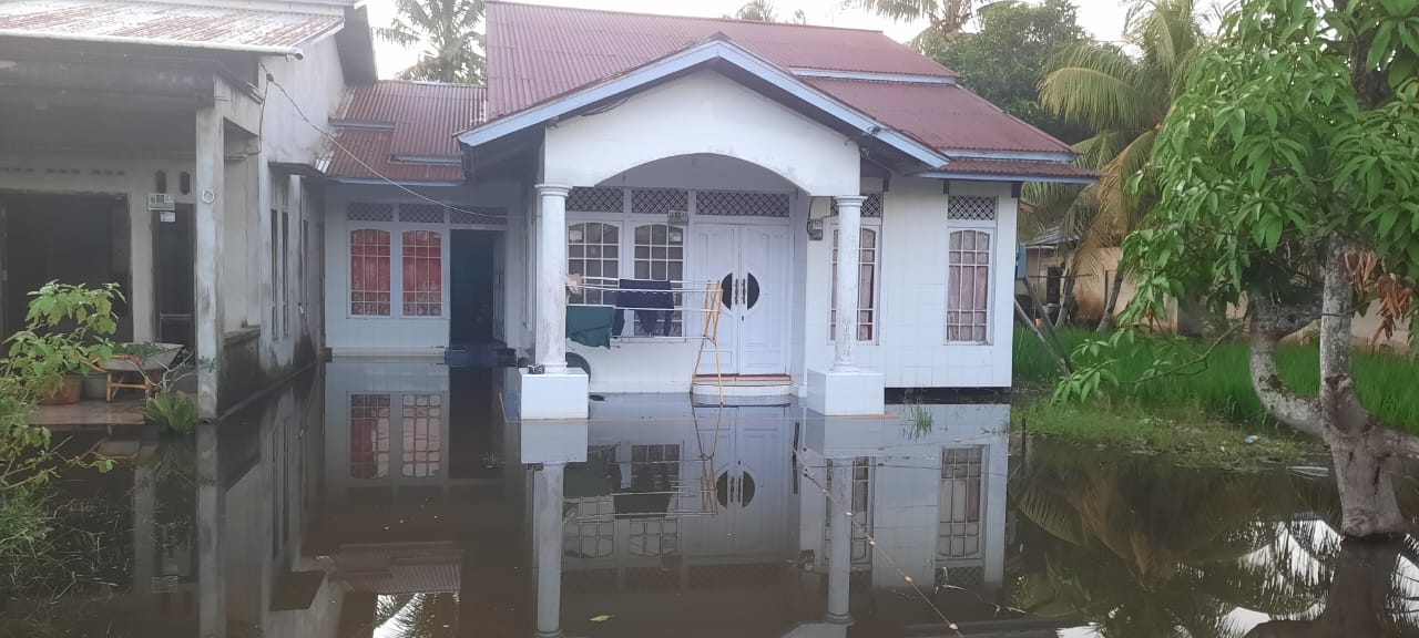 Banjir merendam bangunan fasilitas umum seperti sekolah hingga permukiman warga. Selain itensitas hujan, pengaruh naiknya permukaan air sungai akibat pasang surut menjadi penyebab banjir yang terjadi rata-rata mulai pukul 5 pagi dan baru surut sekitar pukul 10 pagi.