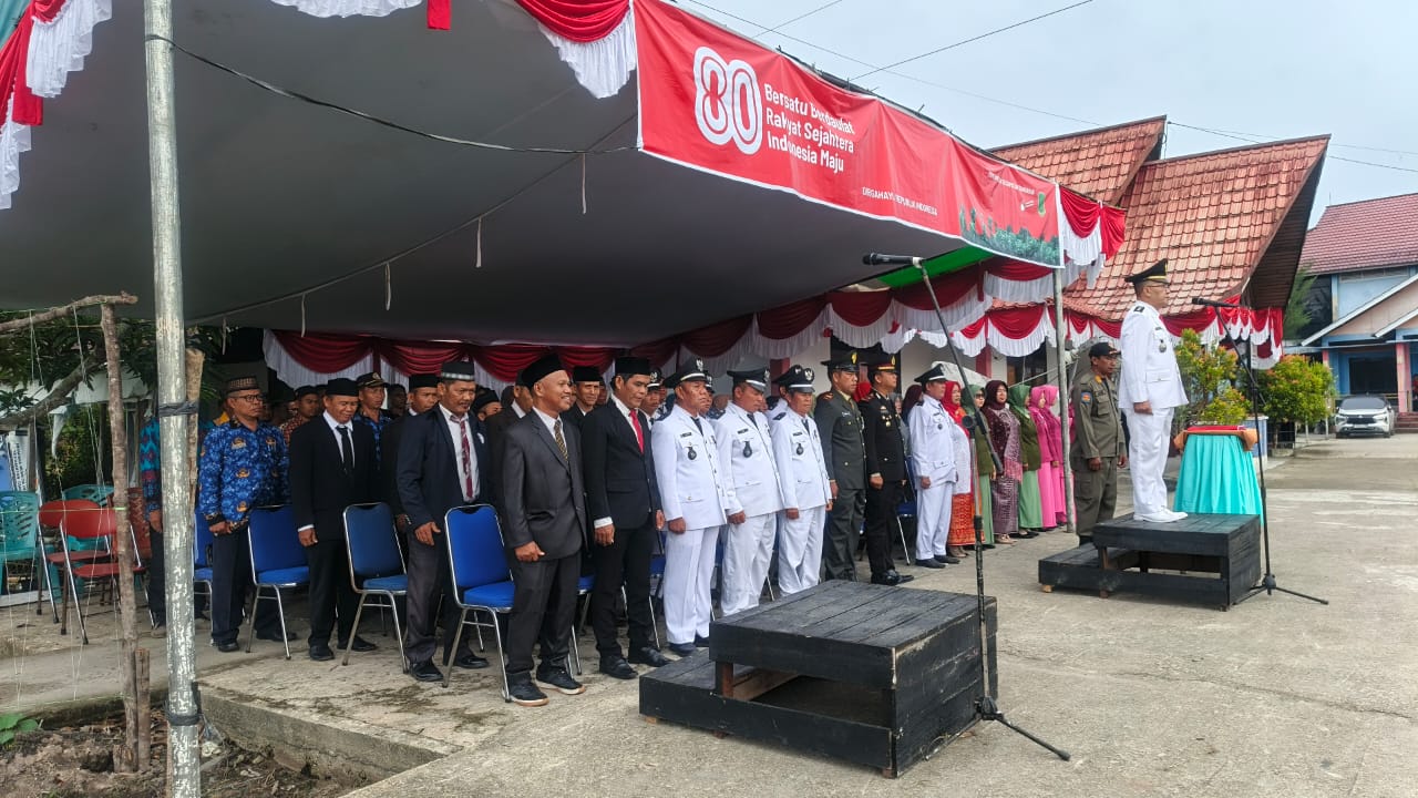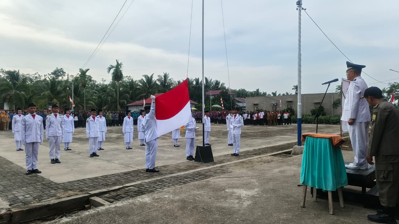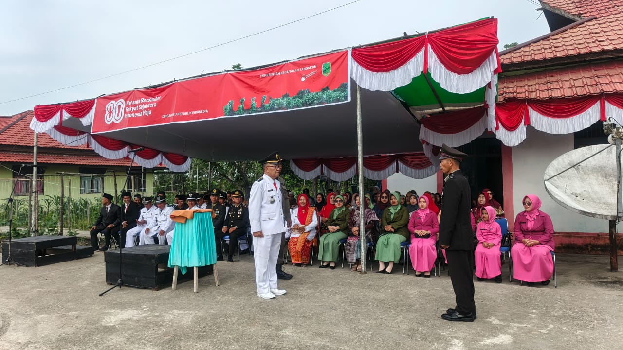 Upacara Pengibaran Bendera Merah Putih dipusatkan di Halaman Kantor Camat, Ahad (17/8) oleh Pasukan Pengibar Bendera (Paskibra) Kecamatan Tangaran yang telah dilatih Petugas yang ditunjuk Pemerintah Kecamatan Tangaran sejak awal Agustus 2025 lalu.